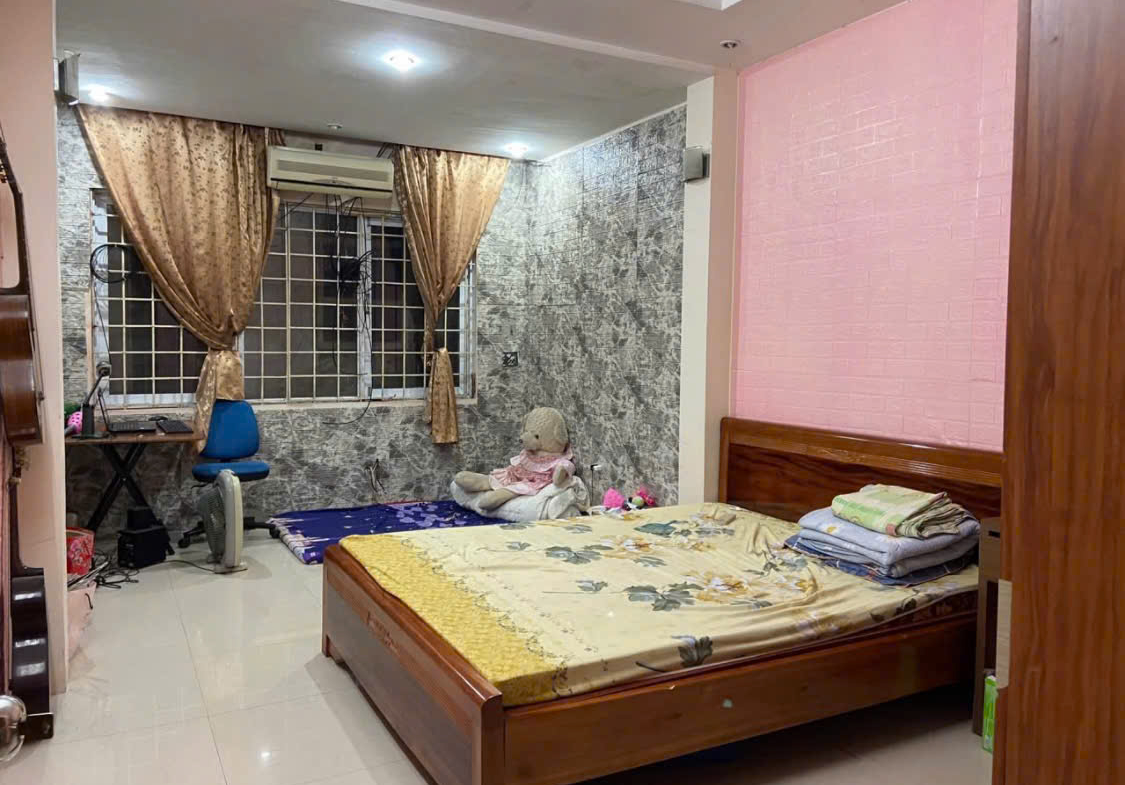 Nhà 4 tầng x 30m², 2 ngủ, 2 WC, có sân phơi. Nội thất đủ: giường tủ, điều hòa, nóng lạnh, tủ lạnh, máy giặt.