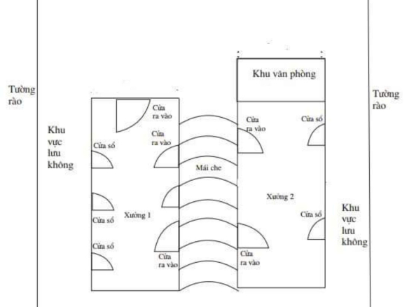 – Tổng khuôn viên 4000m2 bao gồm 2 nhà xưởng (tổng 2500m2) + nhà văn phòng 2 tầng (100m2/tầng), còn lại là sân bãi.