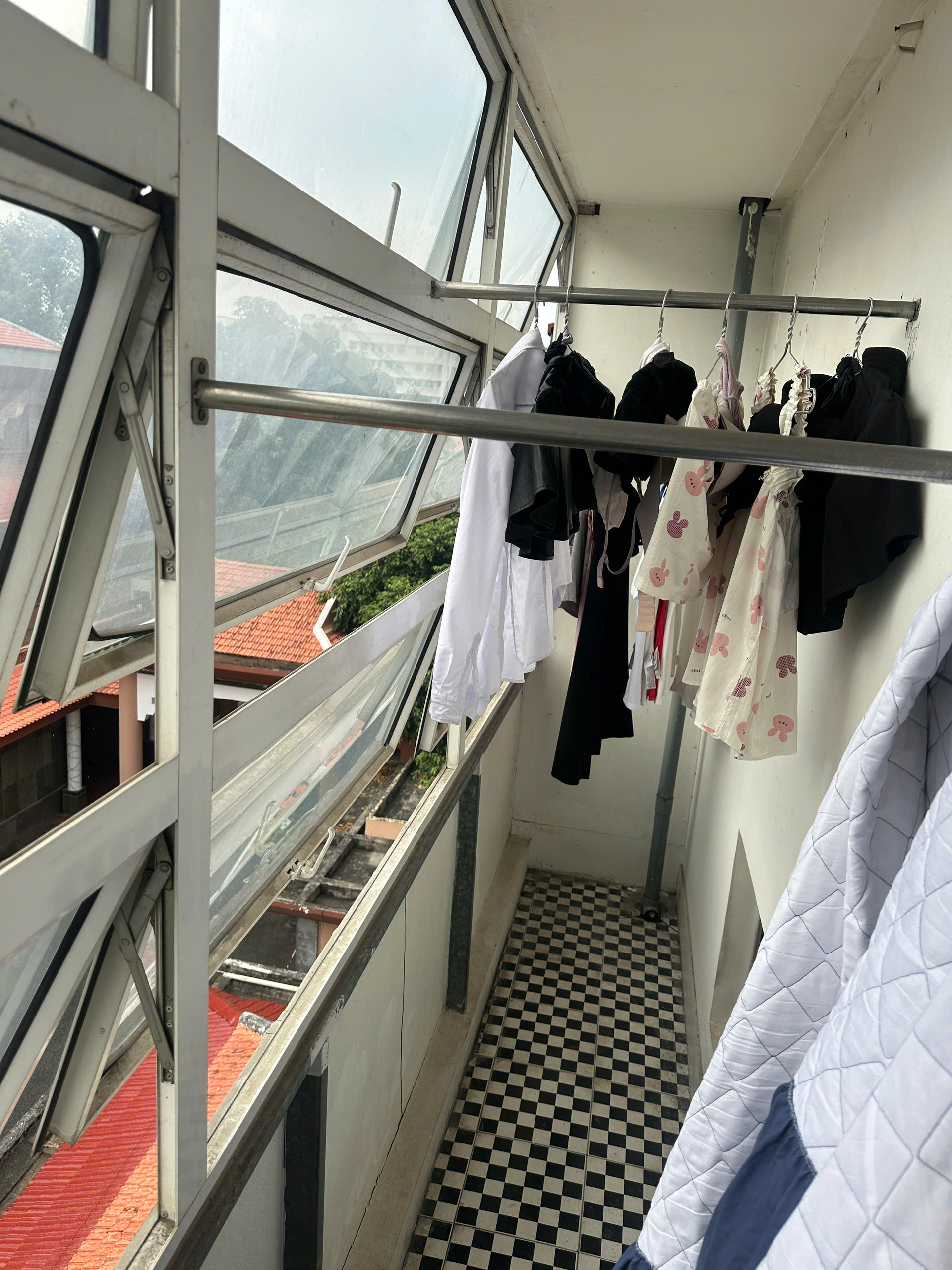 + Phòng hướng 2 cửa thoáng, sạch, ban công lắp kính có rềm cửa đầy đủ, chỗ phơi quần áo thoáng , có sẵn máy giặt, nệm.