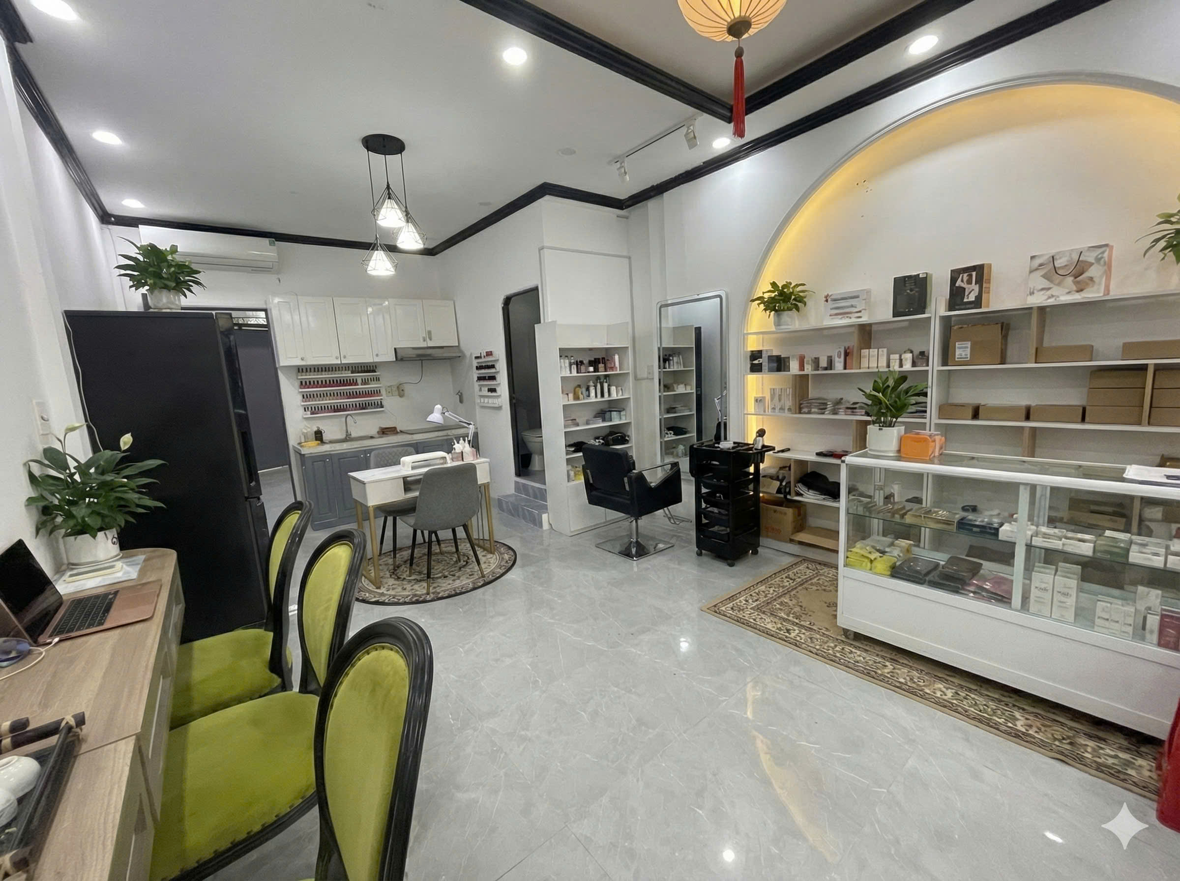 Tầng trệt rộng rãi, thông thoáng, có thể ở hoặc kinh doanh buôn bán. Phù hợp các mô hình như nail, salon tóc, shop hoa cảnh, văn phòng nhỏ, cửa hàng dịch vụ.