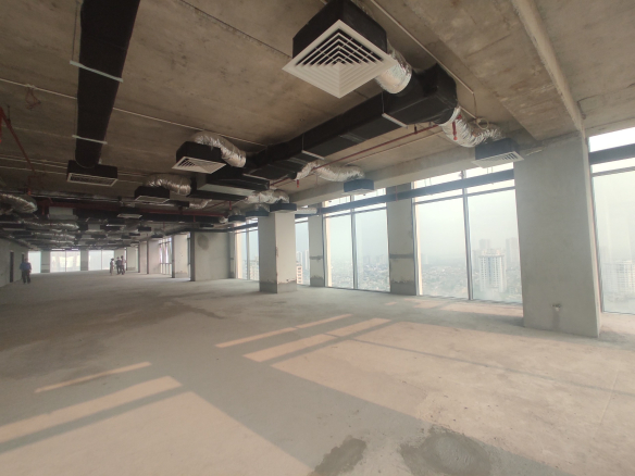 Văn phòng bàn giao tiêu chuẩn hạng A, gồm trần, sàn, đèn điện, điều hòa chất lượng cao.