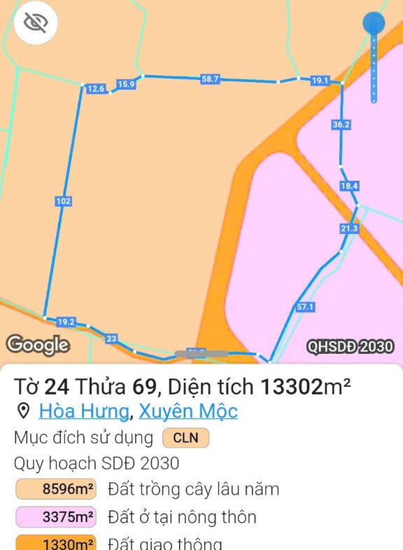 Chủ bán 1 ha4 view hồ sông ray cham nước phủ hồng 3300mv