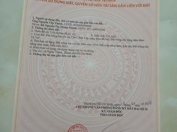 Diện tích : 5x24x80 thổ cư
