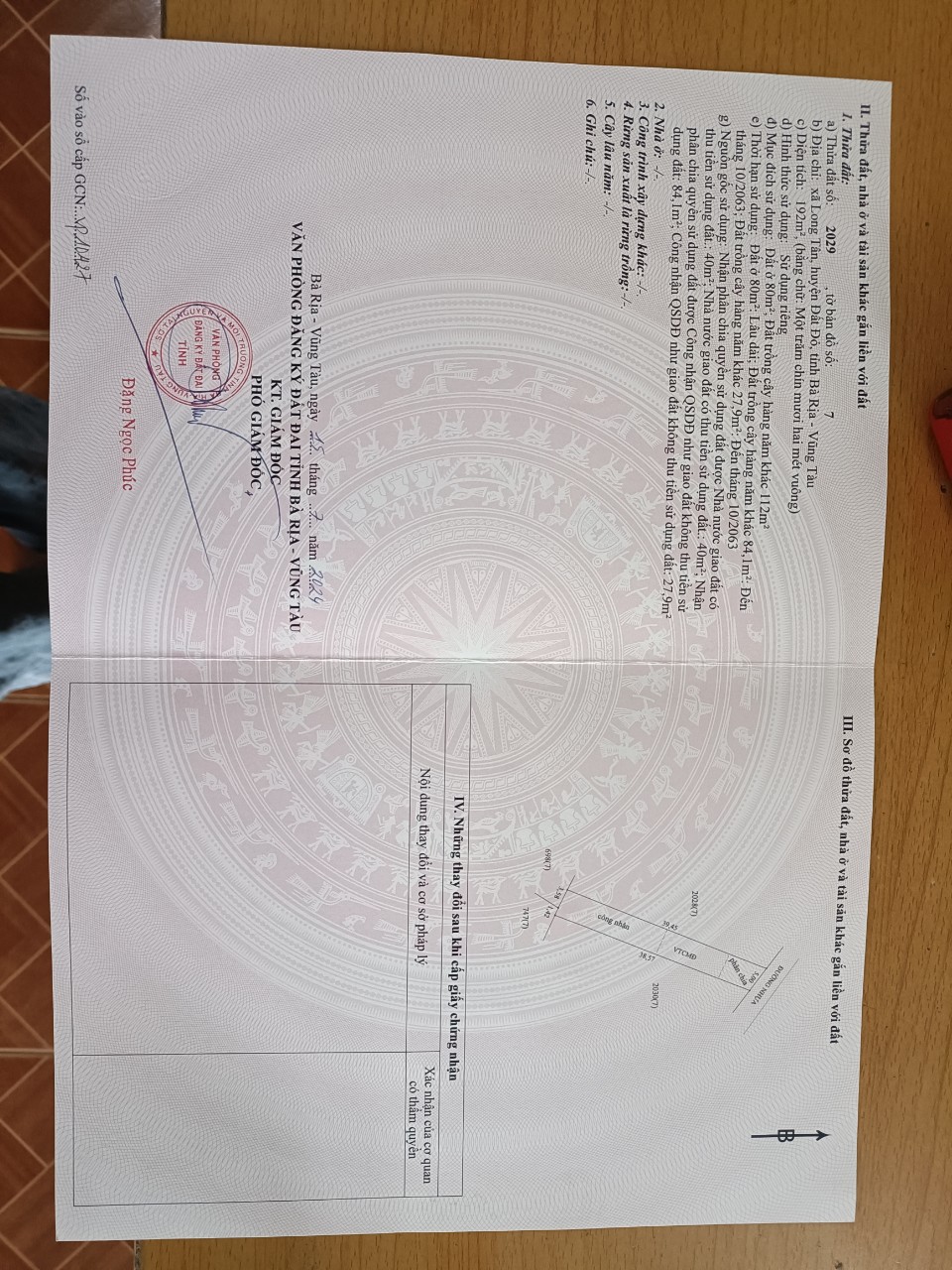 Chủ bán nhanh lô đất mặt tiền nhựa tim vàng long tân đất đỏ