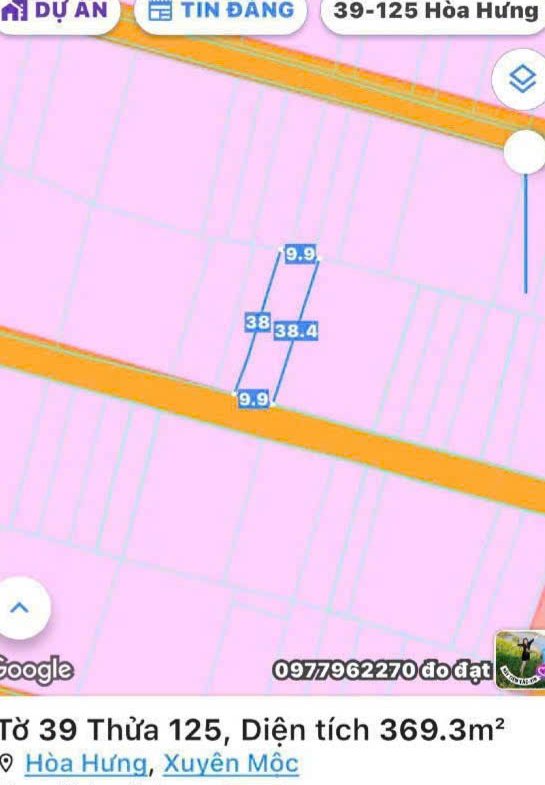 + Diện tích : 369,3m2 – Ngang 9,9m Dài 38m