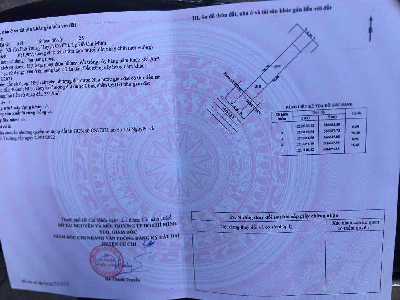 | Diện tích: 681m², gồm 300m² thổ cư – xây dựng thoải mái | ||||
