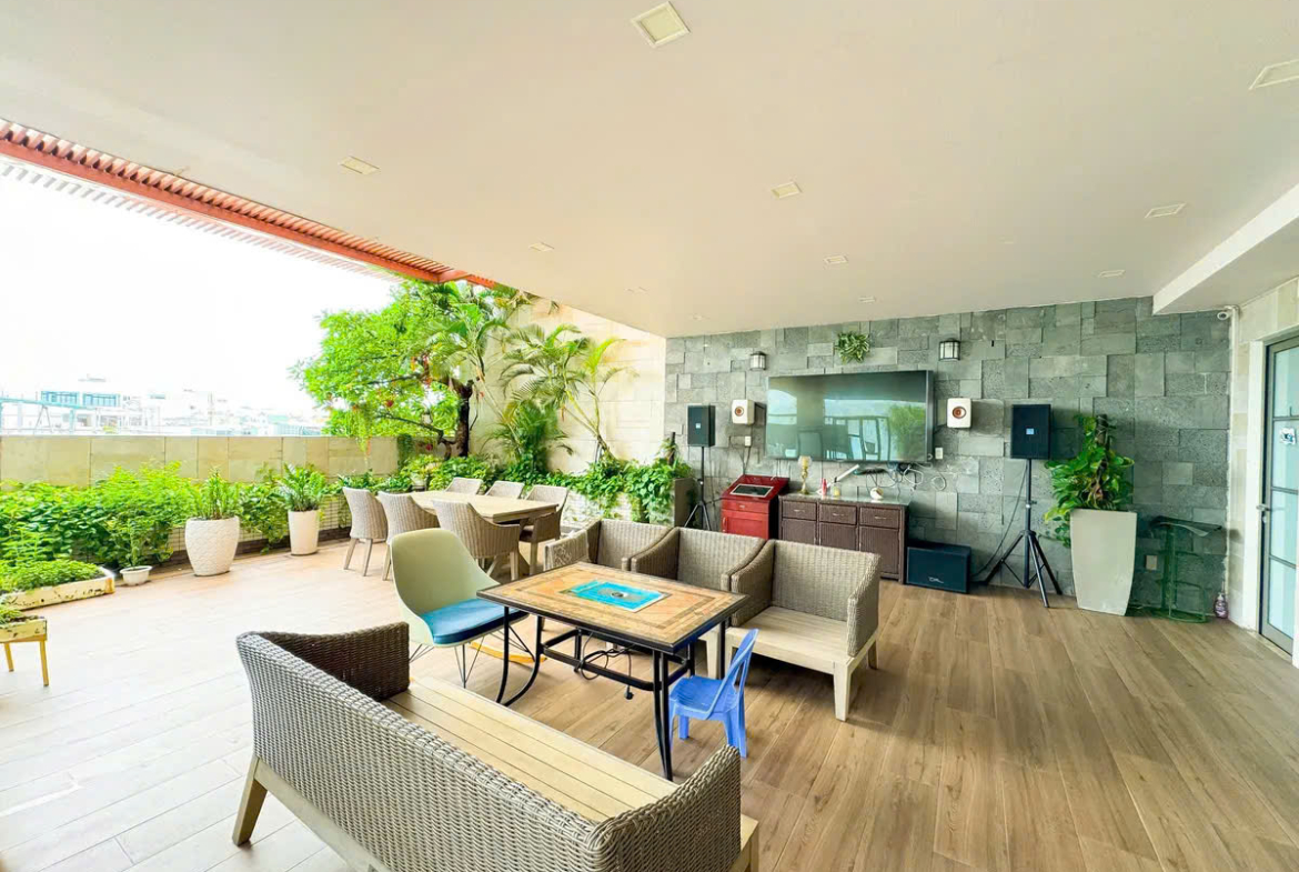 Tiện ích cao cấp: hồ bơi chuẩn Pháp, hồ cá Koi, buồng xông hơi sang trọng, sân thượng thoáng mát, hệ thống camera hiện đại…