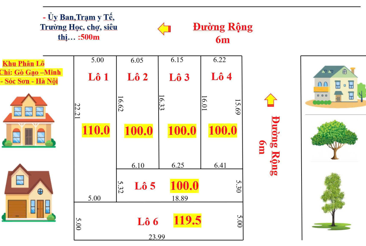 Chuyển Nhượng 6 Lô Đất F0 tại Minh Trí, Sóc Sơn, Hà Nội.