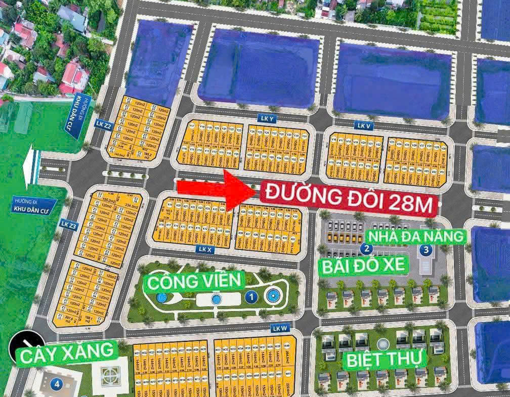 + Đường rộng 15m – 28m, vỉa hè mỗi bên 5m, dt 110m² – 150m²