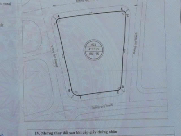 + Diện tích: 4.138,99 m² (mặt bằng đẹp, 4 mặt đều tiếp giáp đường quy hoạch).