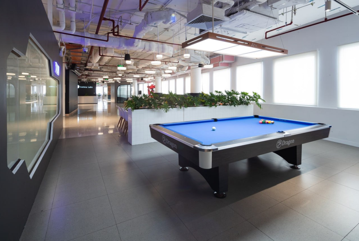 – Văn phòng đã được công ty mình thiết kế cải tạo từ tháng 4/2022, với trang thiết bị cao cấp, mới sử dụng hơn 1 năm. Văn phòng thiết kế có không gian làm việc mở, một vài phòng họp, nhiều góc làm việc sáng tạo, khu pantry, vui chơi giải trí…