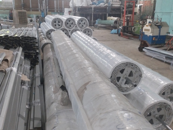– Trục cuốn sử dụng hệ lò xo sợi xoắn trợ lực giúp cửa vận hành êm.
