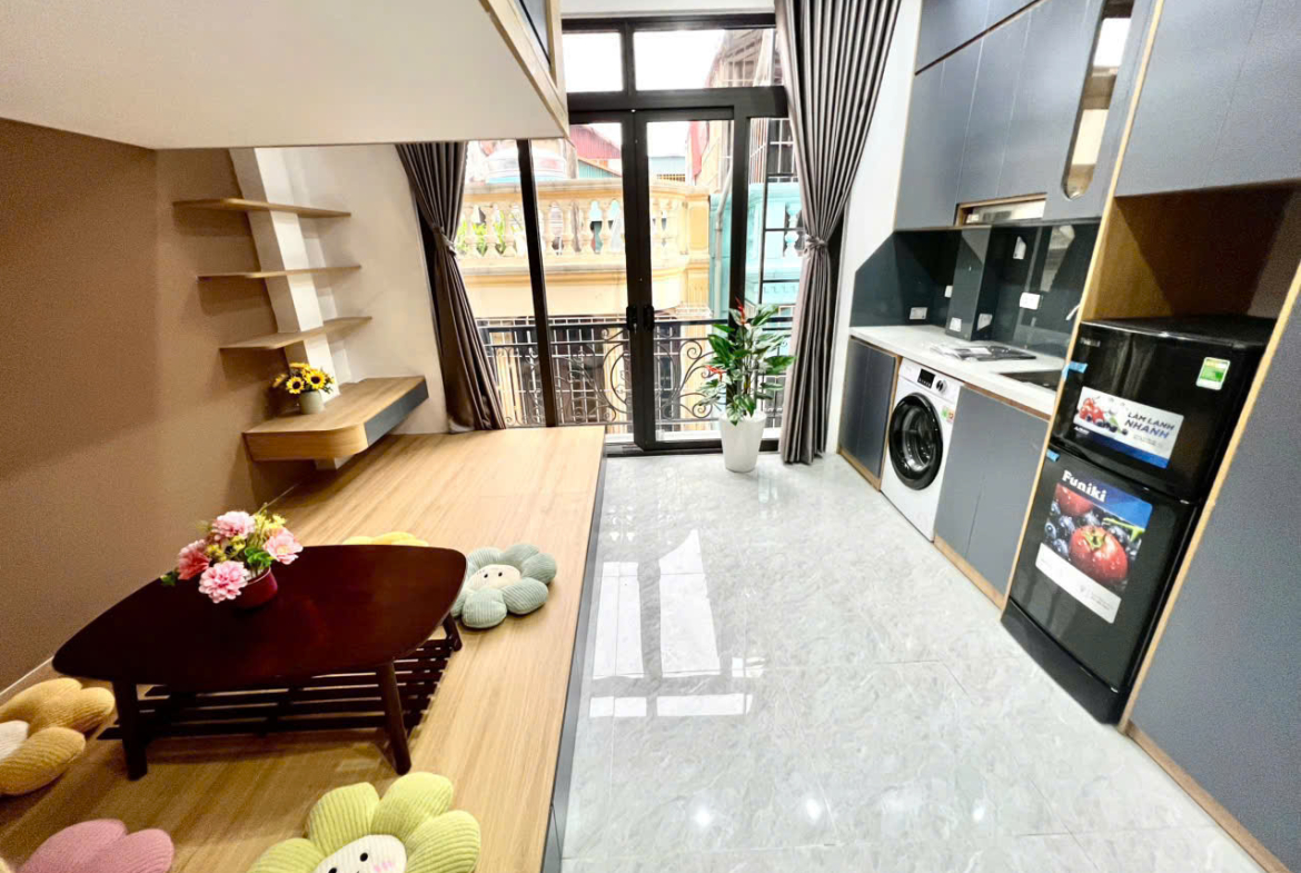 (Cực hiếm) Căn hộ Duplex 28m2 ngõ 147 Vũ Tông Phan – Máy giặt riêng – Cách phố 30m – Nhận xe điện