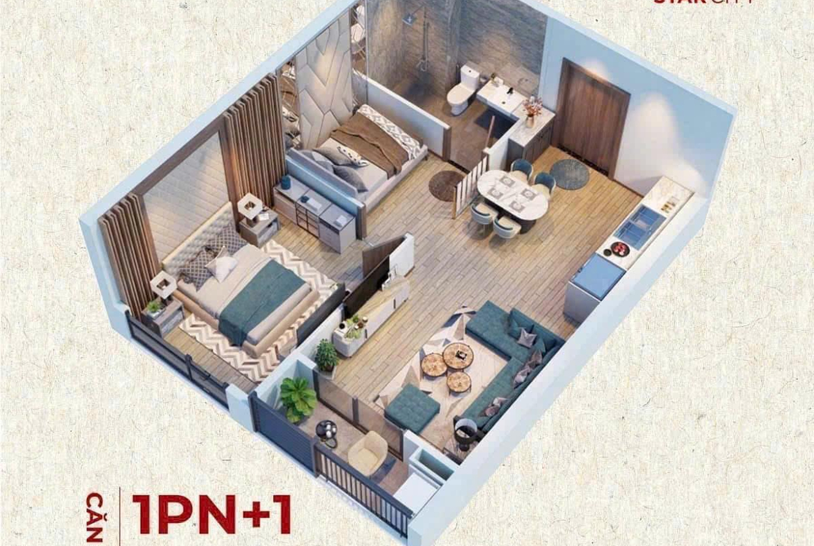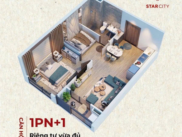 Thiết kế: 1 phòng ngủ + 1 phòng đa năng linh hoạt.