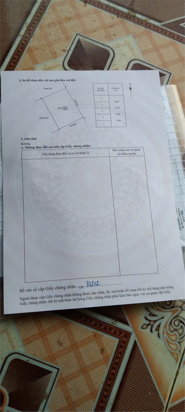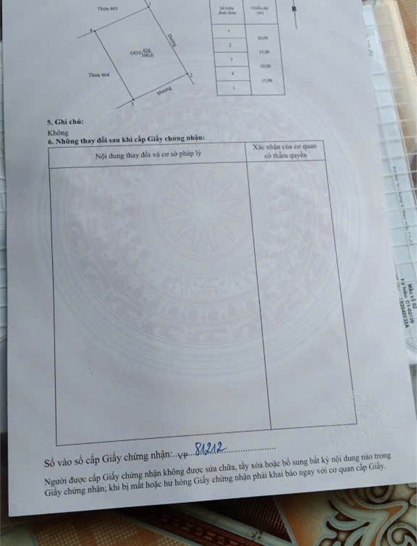 Diện tích :mặt tiền 20 mét, sâu 15 mét thực tế là sâu 35 mét, chia được thành 4 lô với full thổ cư, phù hợp xây khách sạn và khu nghỉ dưỡng