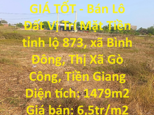 ĐẤT CHÍNH CHỦ – GIÁ TỐT – Bán Lô Đất Vị Trí Mặt Tiền tỉnh lộ 873, xã Bình Đông, Thị Xã Gò Công, Tiền Giang
