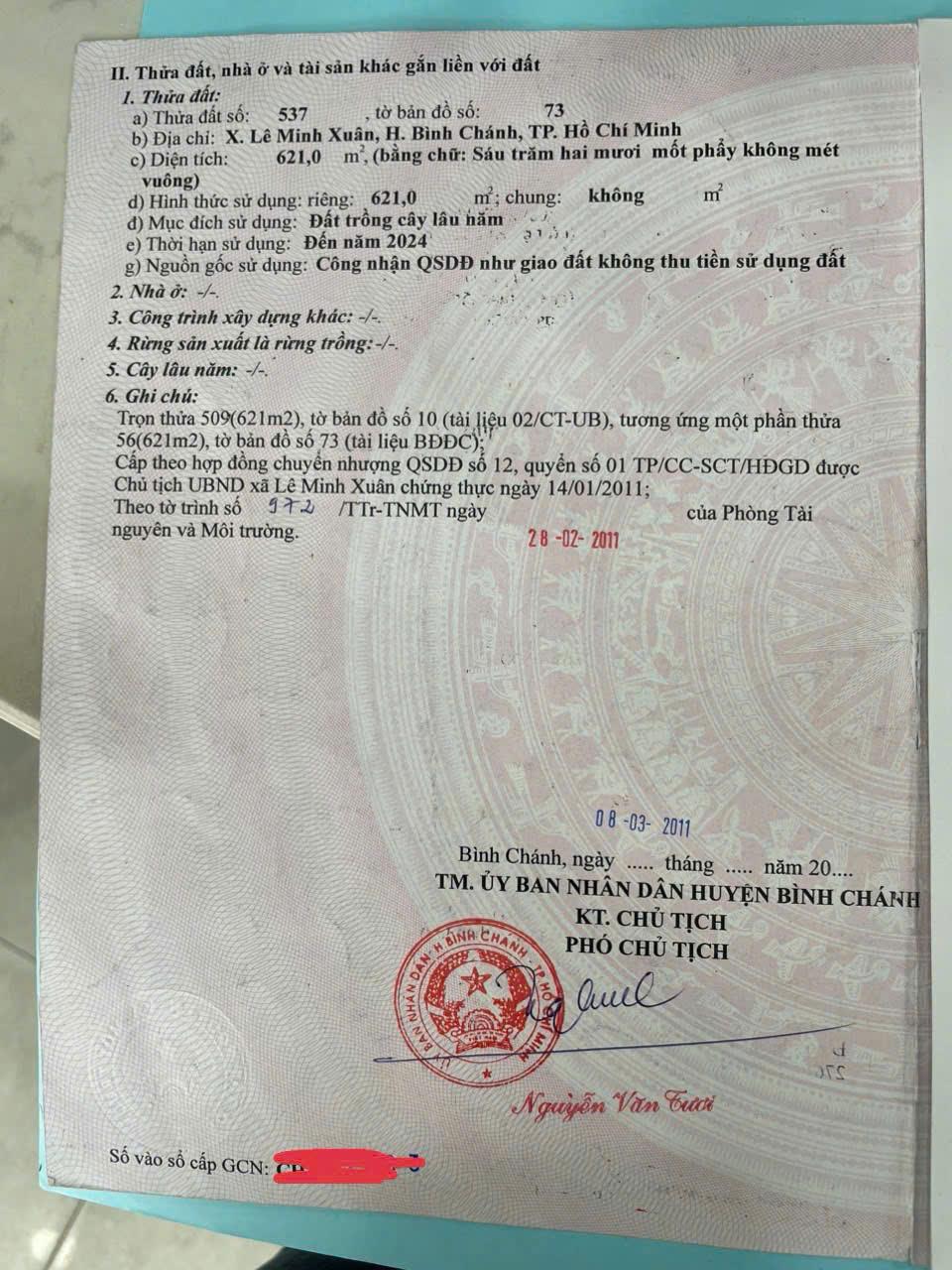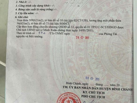 ĐẤT CHÍNH CHỦ- GIÁ TỐT cần bán gấp lô đất vị trí đẹp tại huyện Bình Chánh, TPHCM