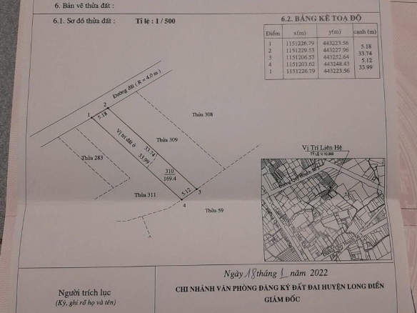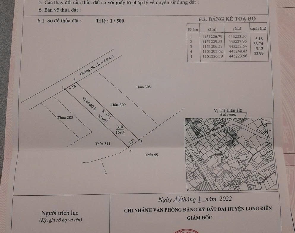 Diện tích: 169,4m2 (100m2 thổ cư, 69,4m2 cây lâu năm)