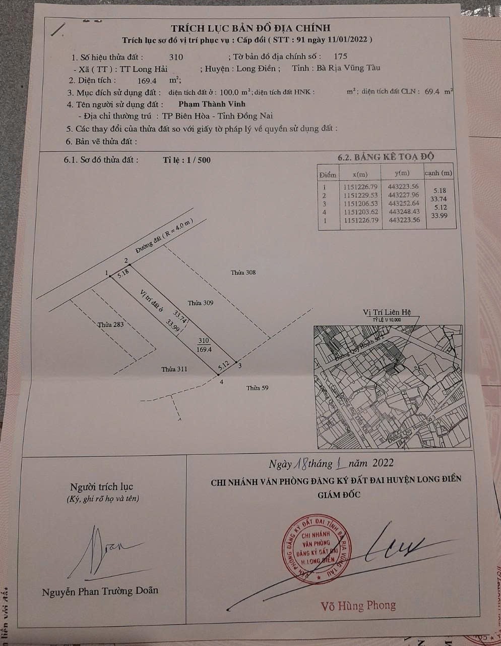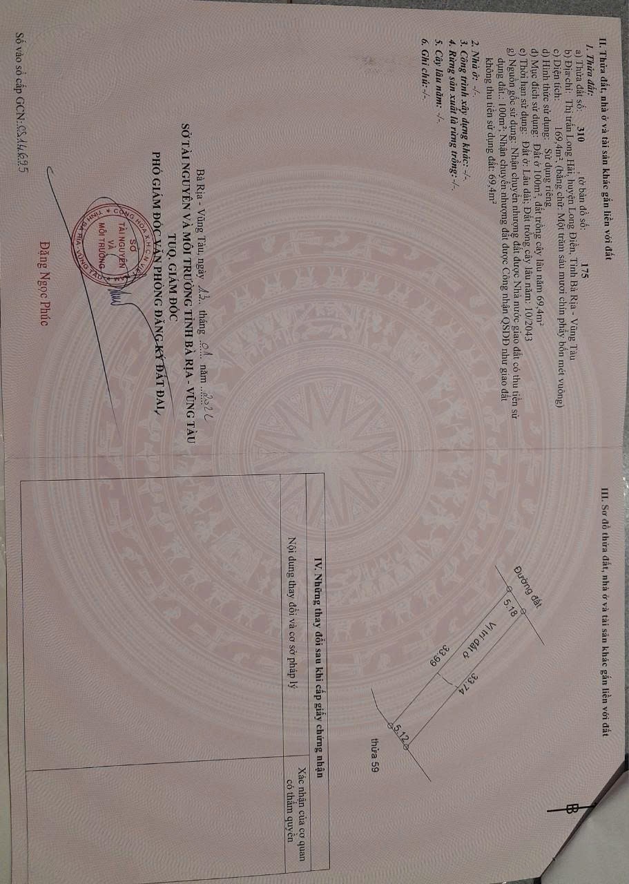 ĐẤT CHÍNH CHỦ – VỊ TRÍ ĐẸP Gần Đường 3/2 TT Long Hải, Long Điền – Bà Rịa Vũng Tàu