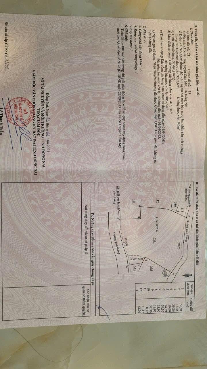Diện tích: 9272m2, đất nông nghiệp