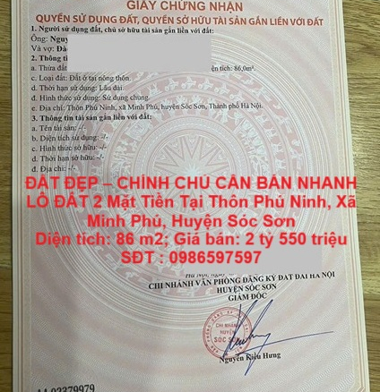 ĐẤT ĐẸP – CHÍNH CHỦ CẦN BÁN NHANH LÔ ĐẤT 2 Mặt Tiền Tại SÓC SƠN, Thành Phố HÀ NỘI