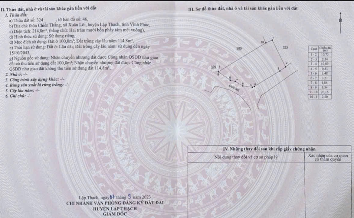 ĐẤT ĐẸP – GIÁ ĐẦU TƯ Chính chủ cần bán nhanh lô đất vị trí đẹp tại huyện Lập Thạch, tỉnh Vĩnh Phúc