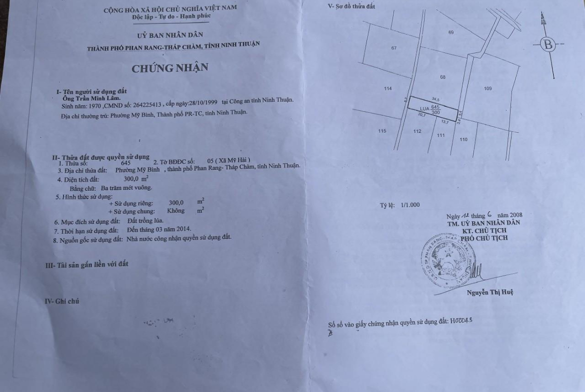ĐẤT ĐẸP – GIÁ RẺ – Chính Chủ Cần Bán Lô Đất Vị Trí Đẹp Tại P Mỹ Bình, TP Phan Rang, Ninh Thuận
