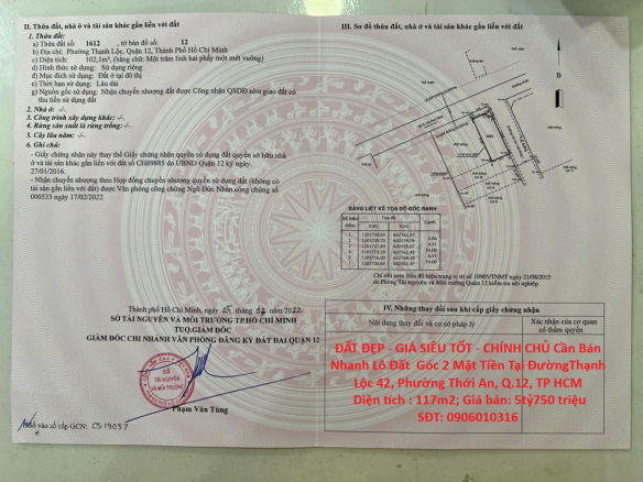 ĐẤT ĐẸP – GIÁ SIÊU TỐT – CHÍNH CHỦ Cần Bán Nhanh Lô Đất Góc 2 Mặt Tiền Tại Quận 12, TP HCM