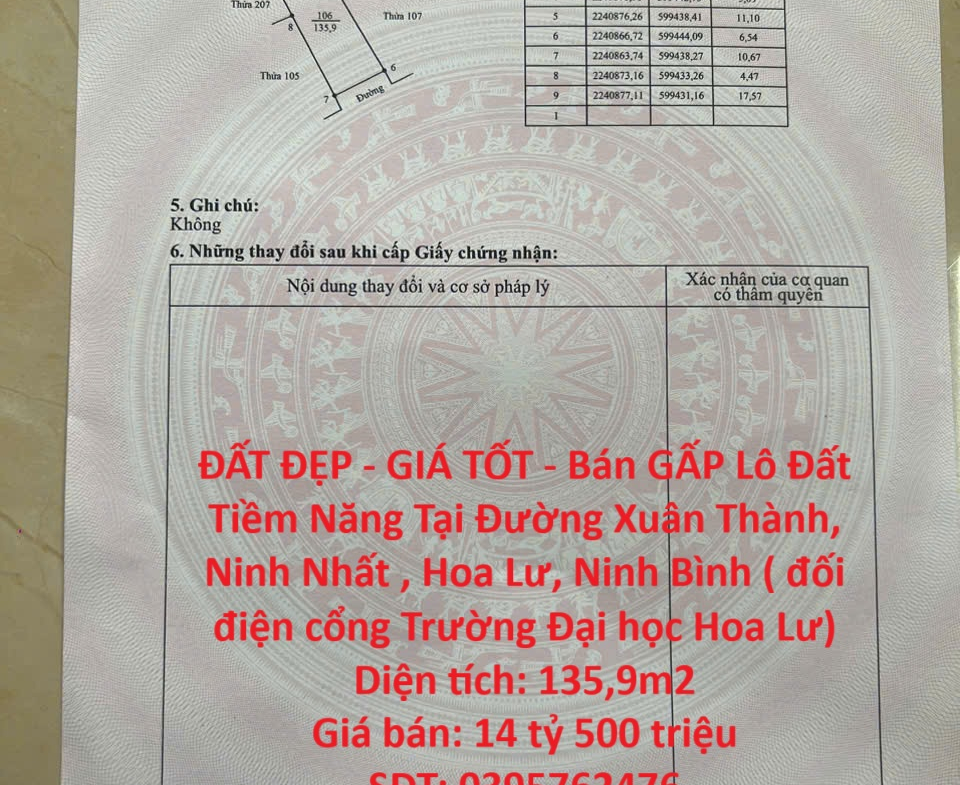 ĐẤT ĐẸP – GIÁ TỐT – Bán GẤP Lô Đất Tiềm Năng Tại Ninh Nhất, Ninh Bình ( đối điện cổng Trường Đại học Hoa Lư)