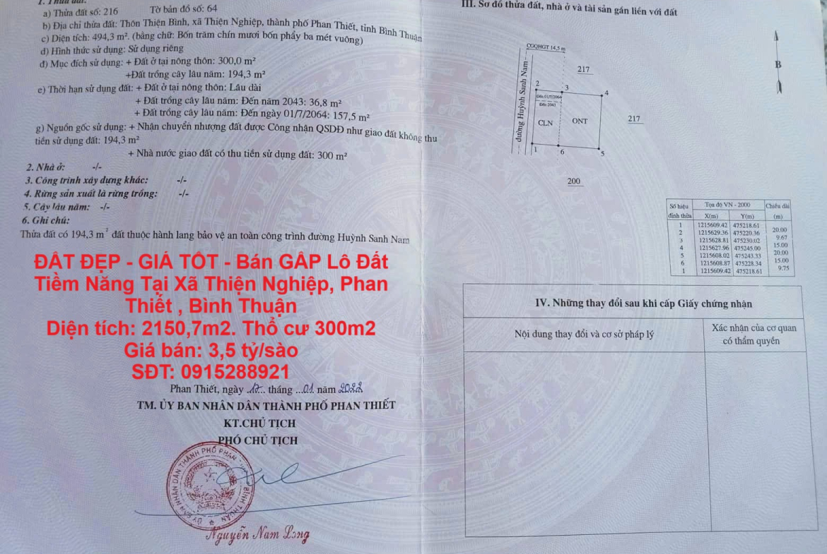 ĐẤT ĐẸP – GIÁ TỐT – Bán GẤP Lô Đất Tiềm Năng Tại Xã Thiện Nghiệp, Phan Thiết , Bình Thuận