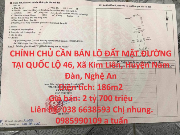 ĐẤT ĐẸP – GIÁ TỐT -BÁN NHANH LÔ ĐẤT ĐẸP TẠI Xã Kim Liên, huyện Nam Đàn, tỉnh Nghệ An