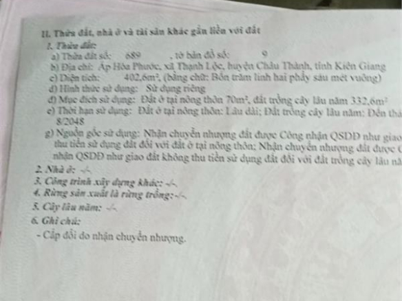 ĐẤT ĐẸP – GIÁ TỐT – Cần Bán Gấp Lô Đất tại Hoà Phước – Thạnh Lộc – Châu Thành – Kiên Giang Diện tích: 1507,6m2