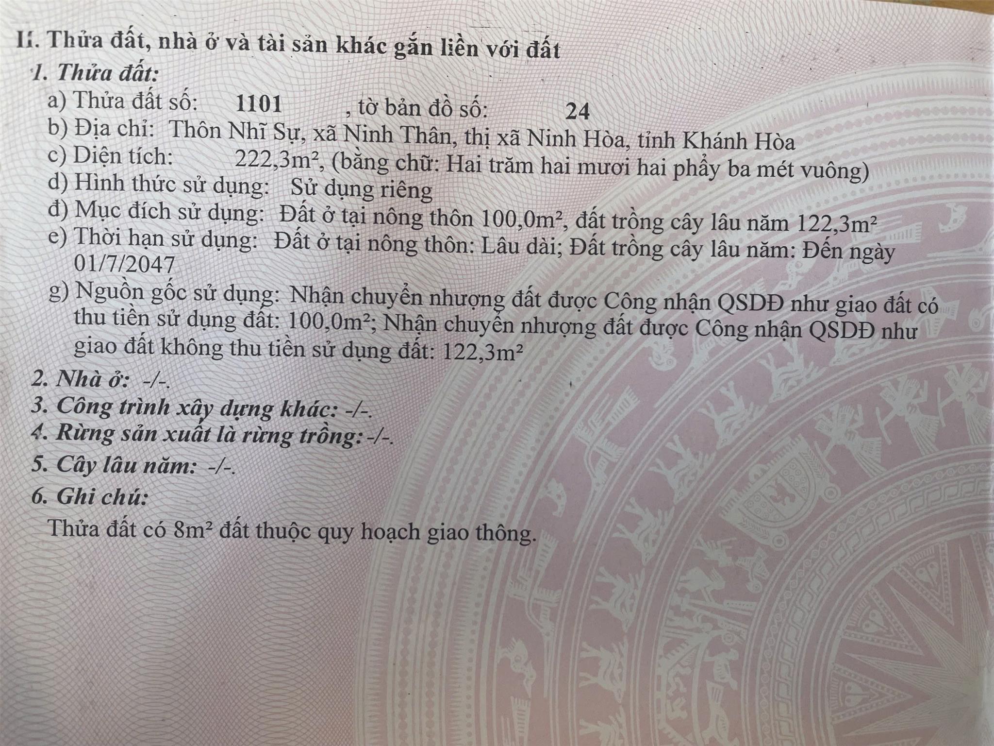 ĐẤT ĐẸP – GIÁ TỐT – CẦN BÁN LÔ ĐẤT tại Thôn Nhĩ Sự, Xã Ninh Thân, Thị xã Ninh Hòa, Khánh Hòa