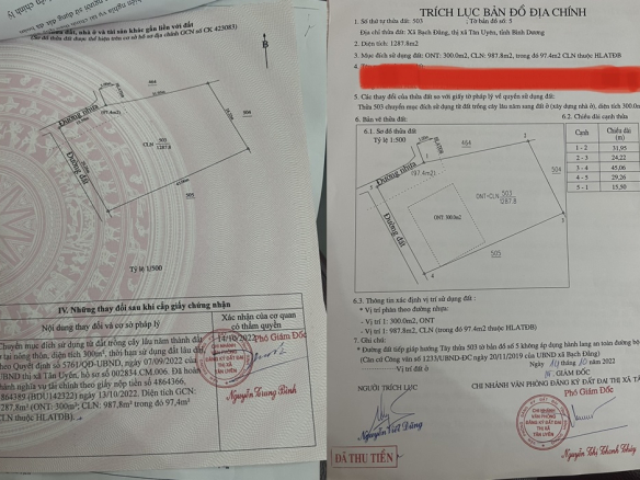 Diện tích: 1287m2 có 300m2 thổ cư.