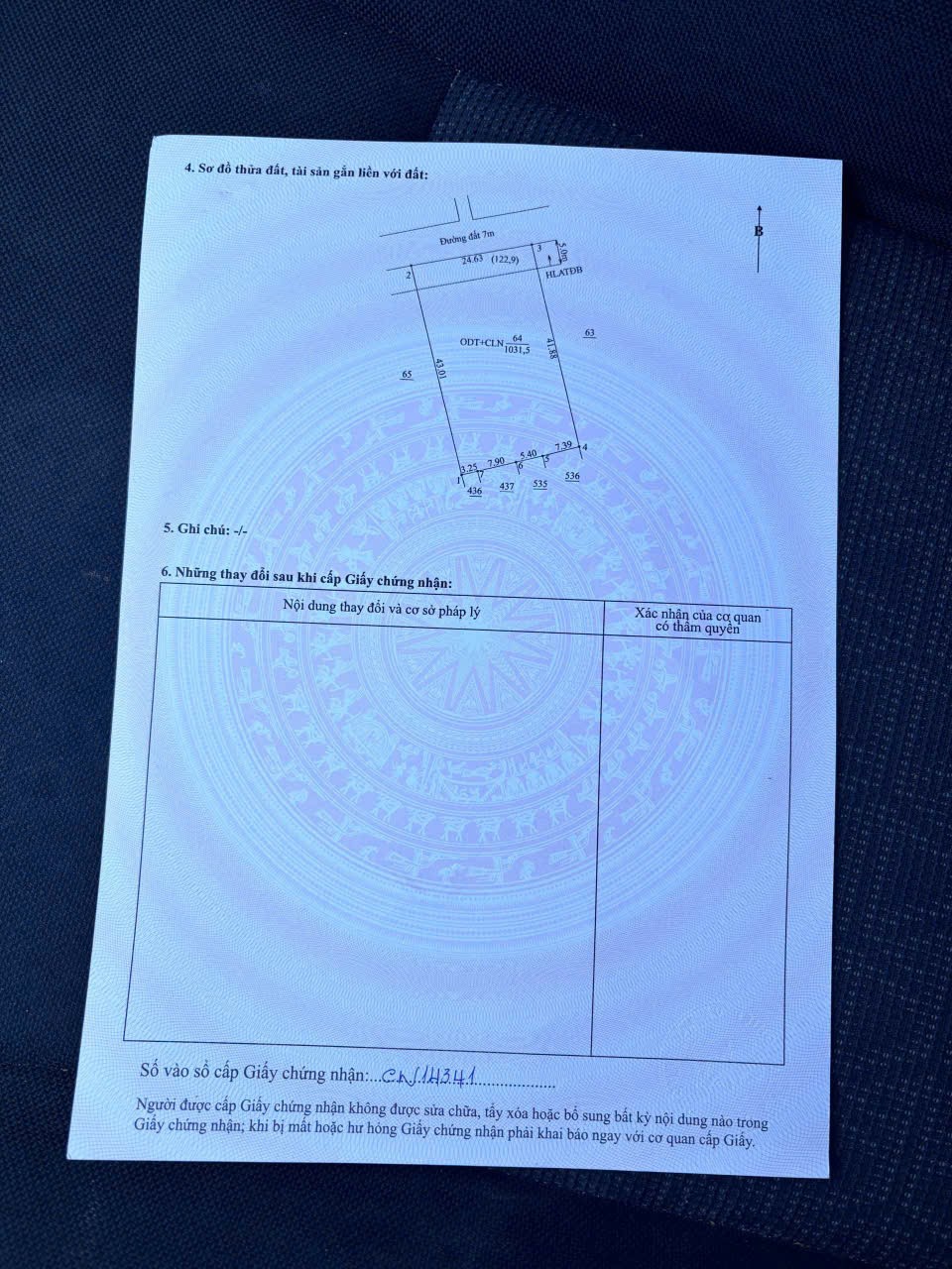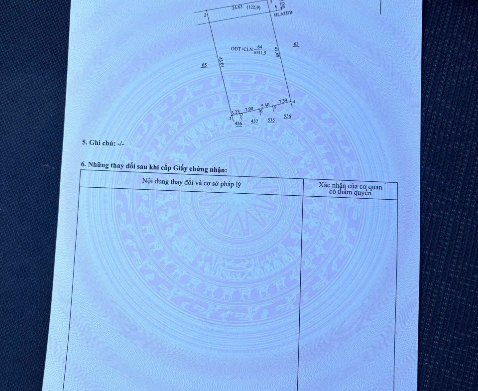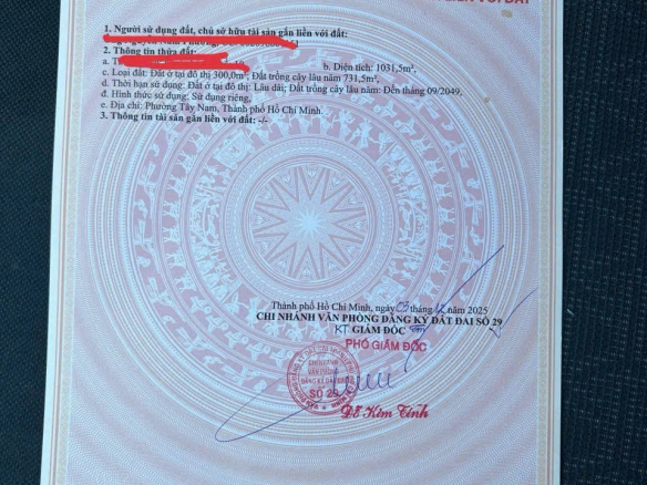 Diện tích : 1031,5m2. Đất thổ cư 300m2, đất trồng cây lâu năm 731,5m2