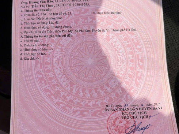 • Thành Phố: Ba Vì