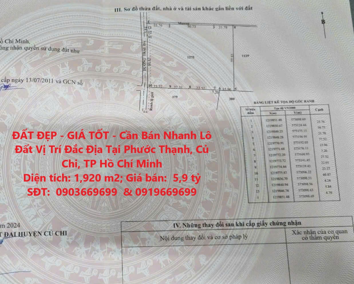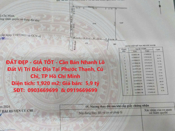 ĐẤT ĐẸP – GIÁ TỐT – Cần Bán Nhanh Lô Đất Vị Trí Đắc Địa Tại Phước Thạnh, Củ Chi, TP Hồ Chí Minh