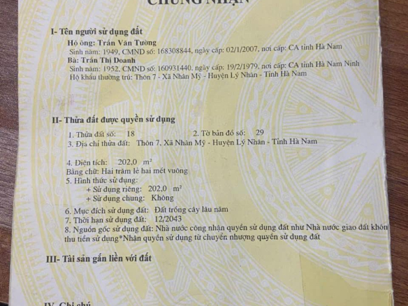 ĐẤT ĐẸP – GIÁ TỐT – Cần Bán Nhanh Lô Đất Vị Trí Đắc Địa Tại Xã Nhân Mỹ, Lý Nhân, Hà Nam