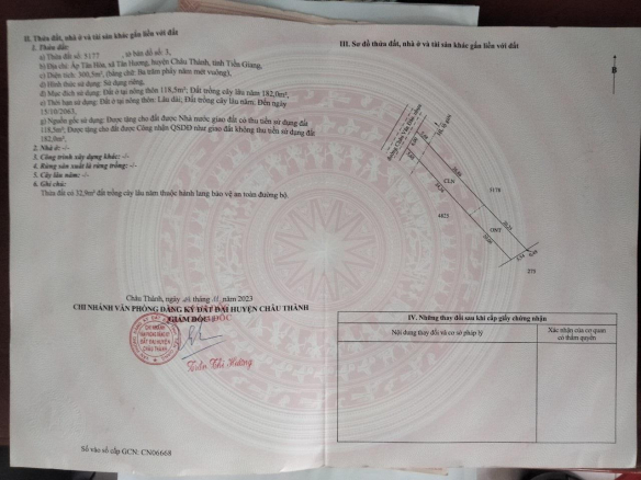 Địa chỉ:  ấp Tân Hòa, Xã Tân Hương, Châu Thành, Tiền Giang. Mặt tiền Châu Văn Đáo