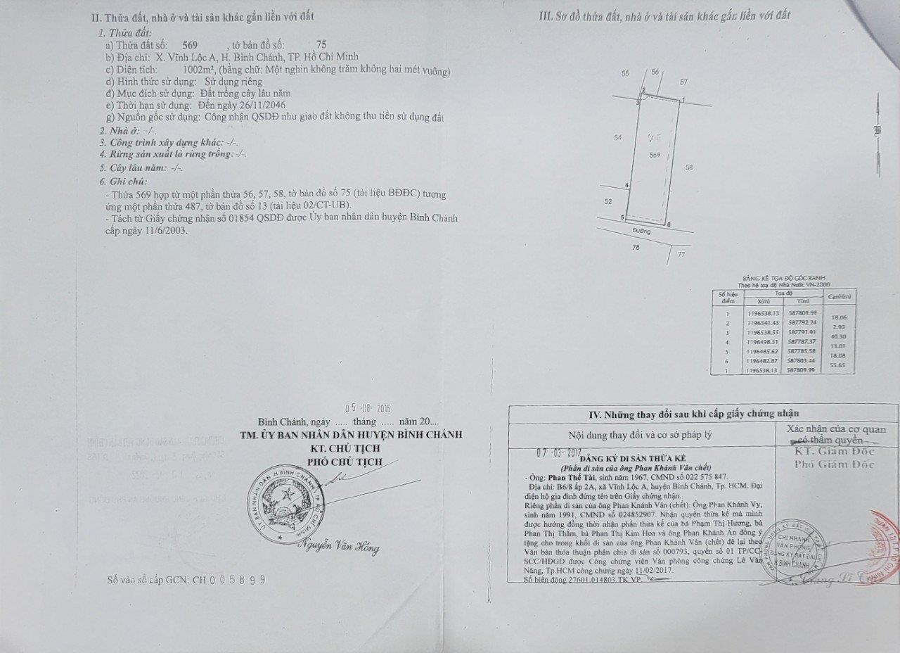 Đất Đẹp – Giá Tốt – Chính Chủ Cần Bán Lô Đất Tại Xã Vĩnh Lộc A, Bình Chánh ,HCM