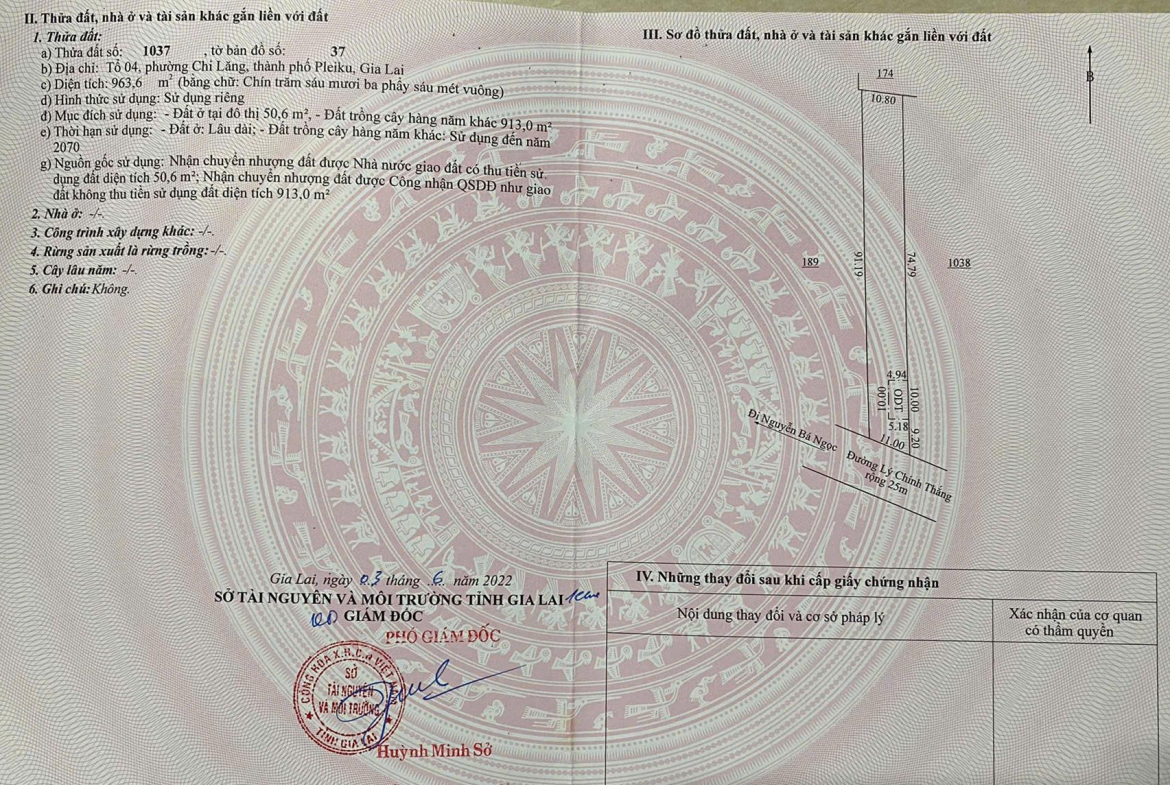 Diện tích: 963,6m2 (thổ cư 50,6m2)