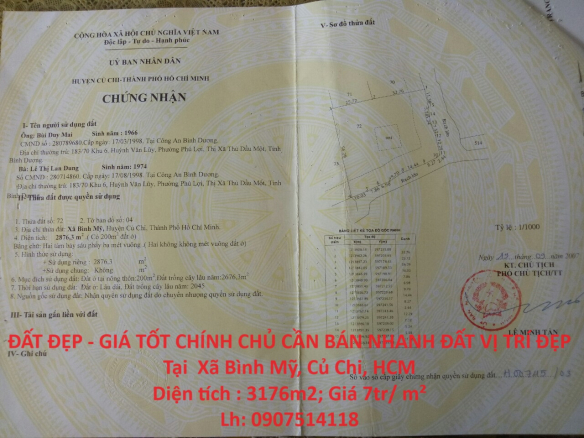 ĐẤT ĐẸP – GIÁ TỐT CHÍNH CHỦ CẦN BÁN NHANH ĐẤT VỊ TRÍ ĐẸP Tại Xã Bình Mỹ, Củ Chi, HCM