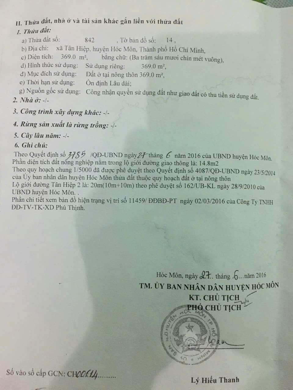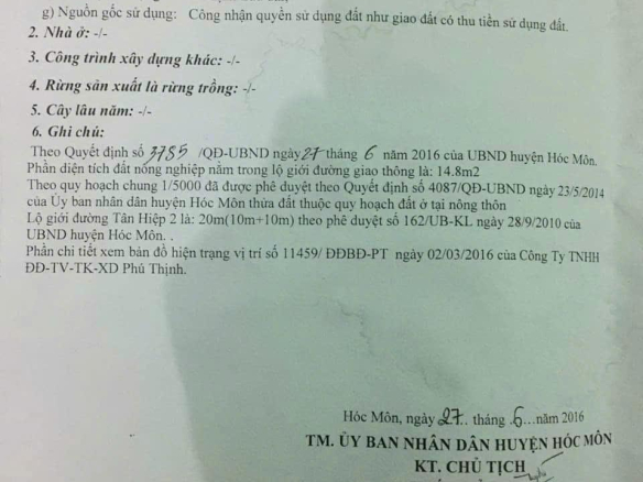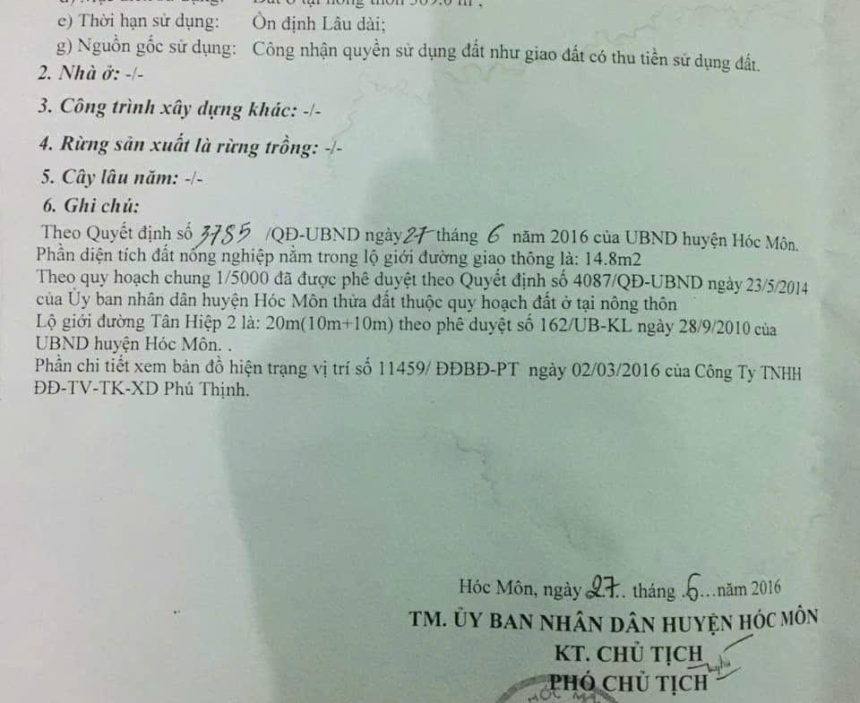 ĐẤT ĐẸP – GIÁ TỐT – CHÍNH CHỦ CẦN Bán Nhanh Lô Đất Tại xã Tân Hiệp, huyện Hóc Môn, TP HCM