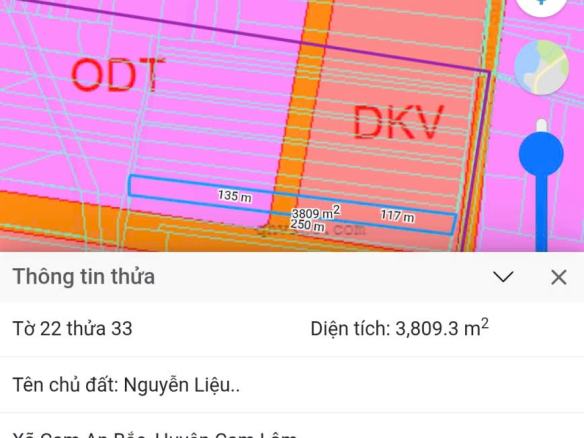 Diện tích: 3809,3m2, có 1641m2 thổ cư