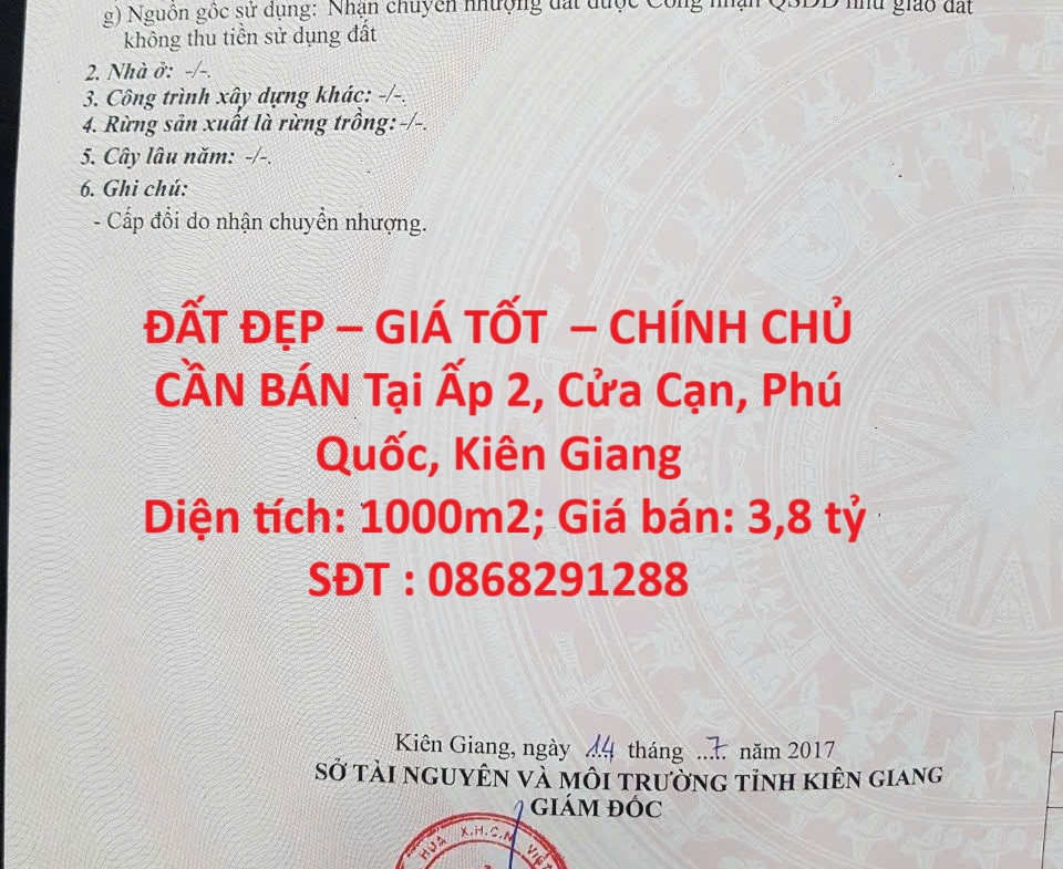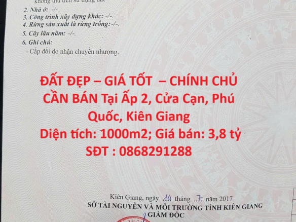 ĐẤT ĐẸP – GIÁ TỐT – CHÍNH CHỦ CẦN BÁN Tại Ấp 2, Cửa Cạn, Phú Quốc, Kiên Giang