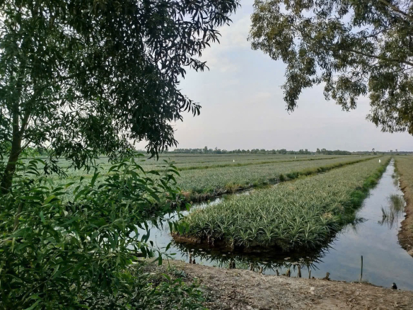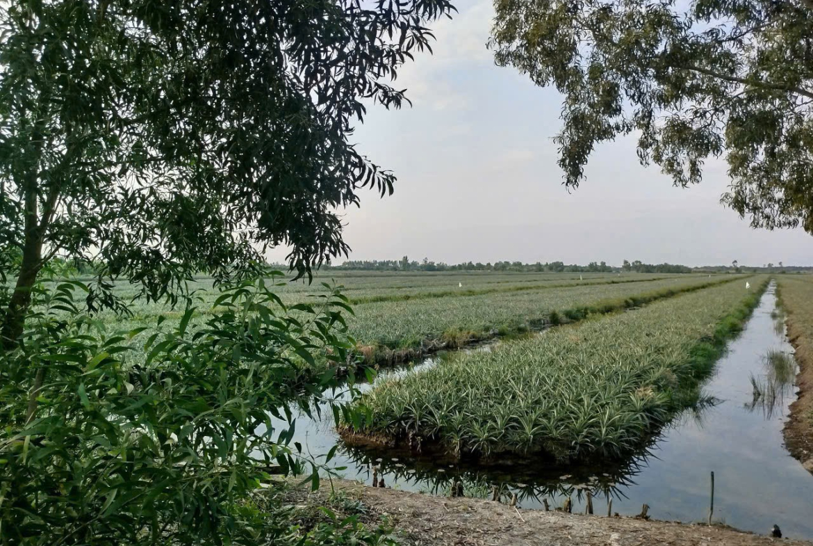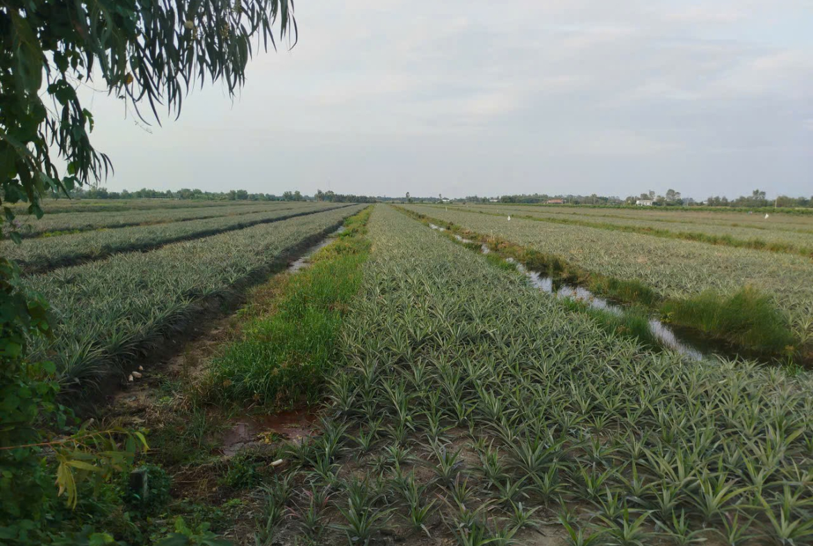 – Đường xe 8 tấn, đang trồng khóm tơ, đầu tư bài bản, đất đẹp vuông vức, vô là chuẩn bị thu hoạch