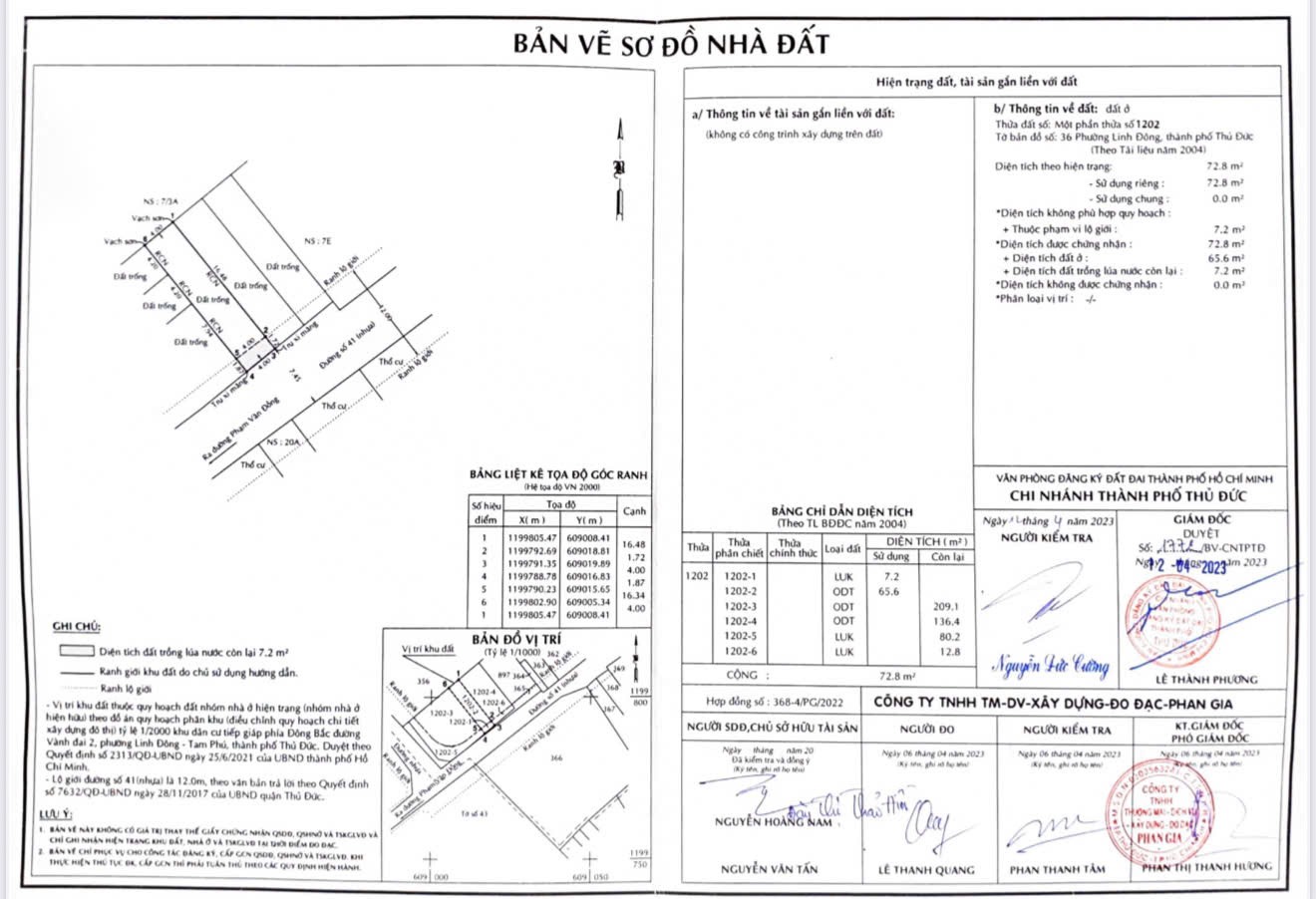 ** Diện tích: 72,8m2 trong đó đất ở 65,6 m2, ngang 4m, dài 18m