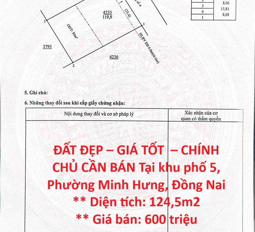 ĐẤT ĐẸP – GIÁ TỐT – CHÍNH CHỦ CẦN BÁN Tại khu phố 5, Phường Minh Hưng, Đồng Nai