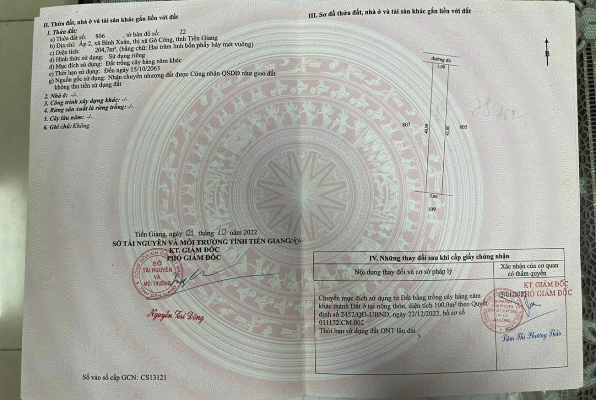 ** Diện tích: 5x40m ( có 100m2 thổ cư)