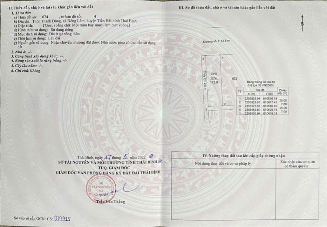 ĐẤT ĐẸP – GIÁ TỐT Chính Chủ Cần Tiền Muốn Bán Lô Đất Đông Lâm 2, Tiền Hải, Thái Bình